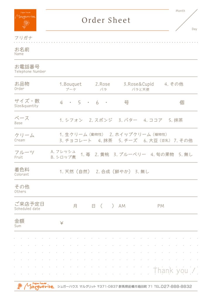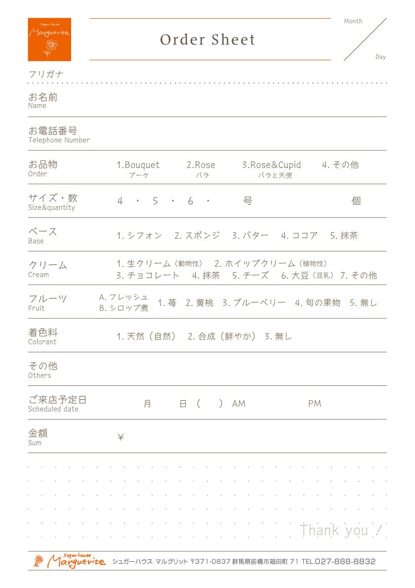 オーダーシートにご記入いただき、お受け取り日時をご予約下さい。